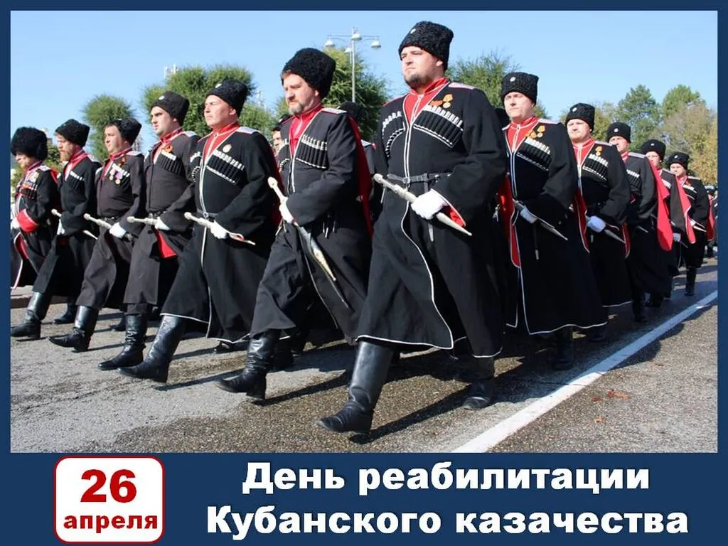 26 апреля - памятная дата для казаков Кубани - День реабилитации Кубанского казачества.